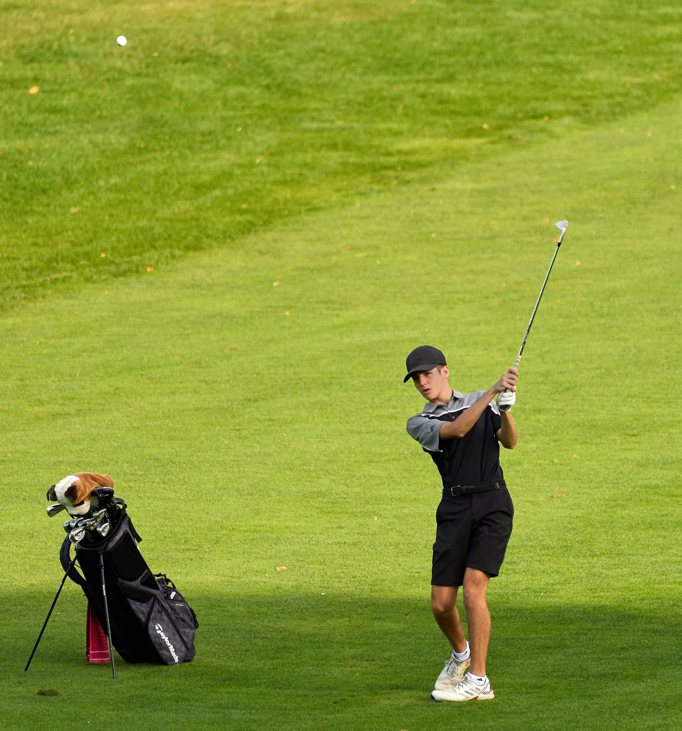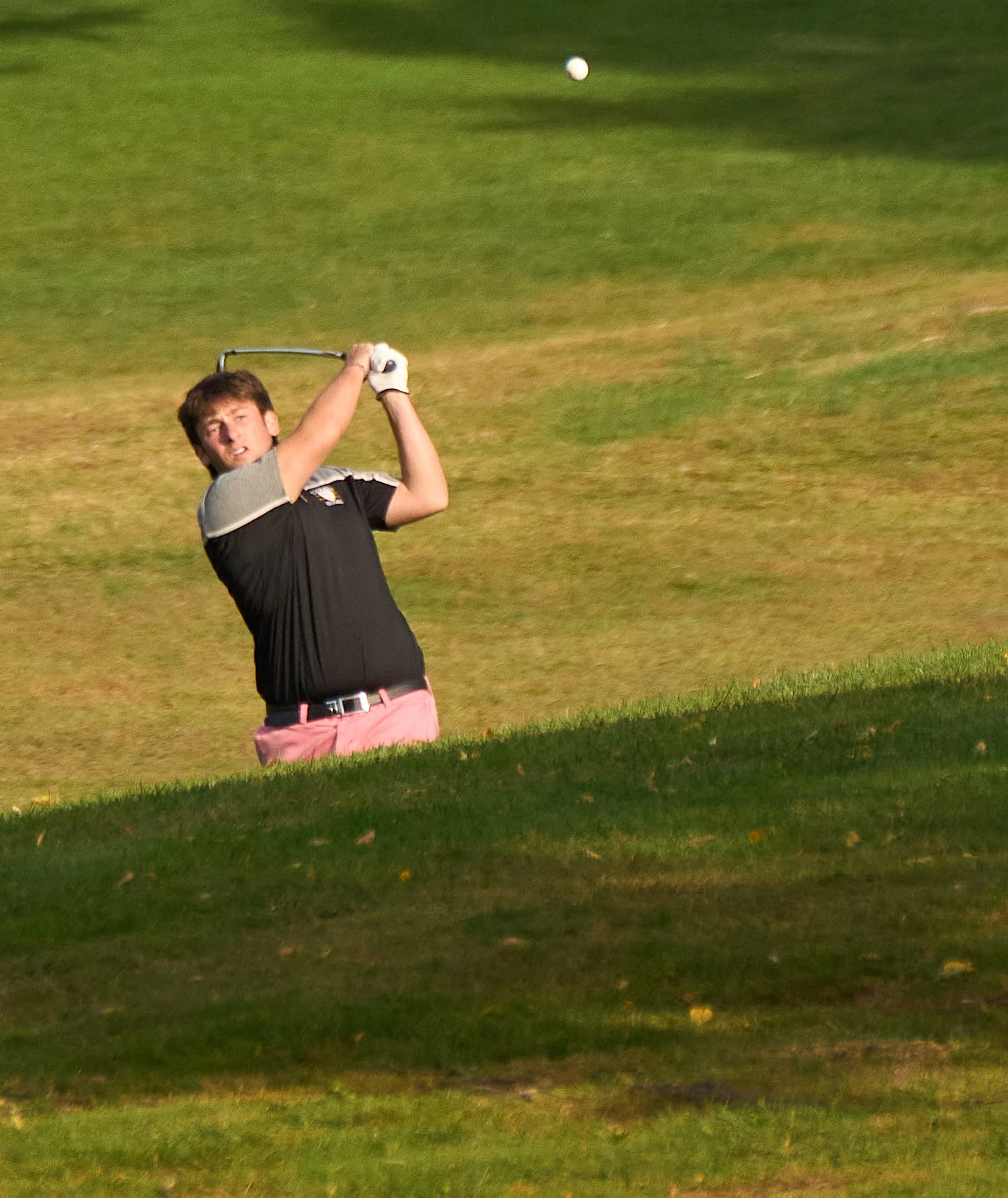 The two things you have to watch out for, other than flying golf balls, are that your backgrounds are going to be much darker so you need to compensate for overexposure, and there’s a lot of green light reflected back into the golfer, especially when they’re in the shade. This may cause your camera to overcompensate with magenta tint. You can generally fix this in post-processing.